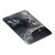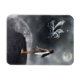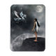 Un hada de bonito, de ala blanca, espera por encima de una montaña y observa a un hermoso caballo blanco volador acercarse a ella. Esto es contra un fondo de un cielo estrellado con una luna y un planeta mágico.