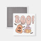 ¡Boo! El diseño de Halloween Boo es perfecto para cualquiera que celebre la temporada de Halloween. Incluye texto rosa que lee BOO y tiene calabaza, gorra de brujas, jack o linterna, telaraña y murciélagos.