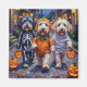 Los adorables y viejos pastores ingleses vestidos con juguetones disfraces de Halloween llevan baldes de calabaza mientras truco o truco bajo el cielo iluminado por la luna. Este diseño festivo resalta el chaquetón de la raza, los ojos entrañables y la personalidad amable, que captura a la perfección la atmósfera espeluznante y divertida de la noche de Halloween. Una celebración esponjosa y reconfortante para los amantes del perro y los fanáticos de Halloween por igual.