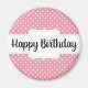 Imán Happy Birday Pink Polka Dot Round Gift Magnet