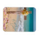Send warm Easter greetings with this tropical-themed flexible magnet. The design features a wooden cross with yellow Easter lilies, delicate pink ribbon, and scattered flower petals in the sand with the turquoise ocean in the background. The beautiful script text reads "Happy Easter." The magnet is a great low-cost gift option for friends, family, co-workers, neighbors, hostess, the elderly, caregivers, teachers, and the perfect addition to any Easter basket! Please browse our complete collection of tropical-themed Easter cards, gifts, and home decor. Special design requests accepted.