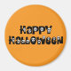 Naranja Happy Halloween imán con calaveras blancas.