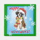 Celebra la temporada navideña con un adorable cachorro Boxer con un sombrero de Santa y una bufanda en medio de copos de nieve y las palabras, ¡Felices Howlidays! Gran idea de regalo de vacaciones para la familia y amigos amantes de Boxer.