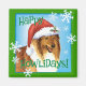 Celebra la temporada navideña con un feliz Collie vestido con un sombrero Santa rodeado de copos de nieve y las palabras: ¡Feliz cumpleaños! Gran idea de regalo de vacaciones para la familia y amigos amantes de Collie.