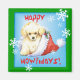 Celebra la temporada navideña con un lindo cachorro de fideos de juguete con un sombrero de Santa y una bufanda en medio de copos de nieve y las palabras: ¡Feliz Día de Amanecer! Excelente idea de regalo de vacaciones para la familia y amigos amantes de Poodle.