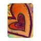 Un pequeño corazón morado está cerrado por un corazón rojo que está dentro de los corazones naranjas. Los corazones están delineados en verde, púrpura y rojo. El fondo de la acuarela es un amarillo suave con puntos de confeti coloridos. Una capa clara de oro y purpurina rojo traza los bordes del corazón. Pintura de detalles de una obra de arte Inspiradora de Word "Happy". Personalizar este corazón de amor arte imán con tu propio texto e imágenes para hacer regalos personalizados especiales de imán de amor o favores de fiesta para bodas, festividades u otro evento especial! Las ganancias de esta venta apoyan a la organización sin fines de lucro 501(c)3 DonnaBellas Angels.