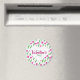 Happy Valentine's day magnet decorated with pink tulip pattern on white background.