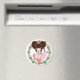 Decora Harajuku chica Yuriko con un borde redondo de flores vintage. El color de fondo es el personalizable.