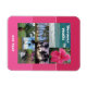 Collage de fotos en Hawái con tonos de rayas rosas. Recuerdos de playas de arena, agua turquesa, puestas de sol moradas, cascadas y piñas. Por https://www.zazzle.com/store/celestesheffey