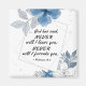 El imán de escritura inspiradora representa un diseño de acuarela floral simple con un marco doble moderno adornado con flores y hojas azules y grises. Presenta Biblia Verse Hebreos 13:5, ... Dios ha dicho: "Nunca te dejaré, nunca te abandonaré". *