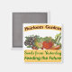 Heirloom Gardens Seed of YAyer, Alimentando al futuro jardinero diciendo para los cultivadores y ahorradores de frutas y verduras vintage. En letras retro y futuristas con uvas, pera, tomate, zanahorias y maíz.