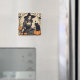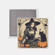 Imán Hermosa bruja de Halloween de época con gato negro