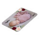 Imán de anuncio de nacimiento con foto de flores rosadas de bebé niña