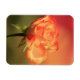 rosa naranja bonito que destaca sobre un fondo borroso en tonos suaves y naranjas verdes.