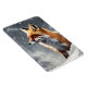 Retrato de un zorro hermoso en una tormenta de nieve.
