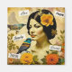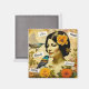 Imán Hermosa mujer de época con pájaros y flores
