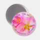 Tres flores de sakura recién nacidas - flores de cerezo japonesas en una delgada rata de árbol contra el impresionante fondo rosado. Jardín de cerezos en el pico de Hanami - observación de sakura - temporada. Una pintura digital de una fotografía. Un imán redondo festivo y colorido ahorra la fecha. ¡Personalizable. Puede cambiar la imagen y puede cambiar o borrar dos textos de plantilla: GUARDAR LA FECHA y ELIZABETH Y NAVIDAD * 12 DE SEPTIEMBRE DE 2021. Puede transferir este diseño a una variedad de otros productos de su elección. Por favor, utilice el botón "Editar diseño" para ajustar la imagen a la forma del producto en particular. Le transferirá a la Herramienta de diseño. Utilice la opción "Ajustar/Rellenar" (menú del lado derecho de la Herramienta de diseño). Puede escalar, rotar, voltear la imagen en la plantilla de producto y puede agregarle algún texto propio. También puede cambiar el tipo, color, curvatura y ubicación del tipo de letra. Solo sé creativo, cómprate uno, diviértete y sé feliz!