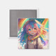 Hermoso chica de Anime con fondo arco iris, los colores utilizados son rosa, verde azulado, naranja, azul, morado y azul. Ai art. generatvientent para niños, lindo y colorido