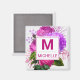 Imán Hermoso Monograma de Flores Rosa y Púrpura