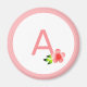 Hermoso monograma rosa y flor rosa sobre imán blanco.