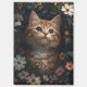 Un diseño encantador con un bonito gatito naranja con vistosos ojos verdes, rodeado por una delicada variedad de flores silvestres. El estilo retrato vintage añade un aire de elegancia intemporal, destacando la expresión dulce del gatito y la belleza suave y natural de la disposición floral.