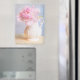 Este imán presenta un delicado y suave peón rosa situado en un marco rústico y sencillo.