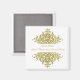 Bonito barroco diseñado Guardar el imán de la fecha. El bonito diseño barroco de tonos dorados se divide en el centro como un área de texto para los nombres de la fecha y de las novias y novios. Un gran recordatorio para toda tu familia y amigos. Personalizar con su fecha y nombres de boda.