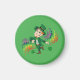 Magnet con el Ilustracion de un lindo y feliz leprechaun bailando, lleva puesto un traje verde y un sombrero top y está rodeado de salpicaduras de color arcoiris Un diseño perfecto para celebrar el Día de San Patricio, dibujado por Radka2D