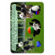 Hermosa escena de 4" x 6" de Panda Scripture de una escena colorida y detallada de cuatro cariñosos Pandas Gigantes jugando sobre un lecho de hierba verde frente a un fondo de árboles de bambú. Estos adorables Pandas están pasando un momento maravilloso y alegre comiendo bambú, rodando en el césped con bolas de playa multicolores, y jugando en un tocón de árbol marrón. Esta escena acompaña a los Salmos de verso de la Biblia 16:11, "Me mostrarás el camino de la vida: en Tu presencia está la plenitud de la alegría; a tu derecha hay placeres para siempre". Este imán hace un regalo maravilloso o puede ser utilizado para recordarnos la Palabra de Dios.