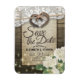 Boda Moderna estilo rústico Ahorra La Invitación De La Fecha Flexibles Plantillas De Imán Fotográfico - Pareja Corazón de Herradura Viejo con Cuchillo de Arco y Carne Blanca, Flor De Hidrangea, Luces De Cadenas y Ropa Burlap sobre Antecedentes De Madera Antigua. Un diseño perfecto para tu gran día. ¡Todo el estilo de texto, colores, tamaños se pueden modificar para adaptarlo a sus necesidades!