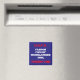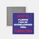 Este es un imán para tu buzón de correo para esas entregas ocasionales. Hay texto rojo y blanco contra un fondo azul real.