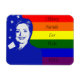 Este imán muestra una imagen de Hillary Clinton, sobre un fondo de arcoiris del Orgullo Gay. El texto se puede personalizar según se desee.