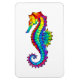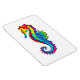 Arco de arcoiris, caballito de mar poligonal sobre fondo blanco. Tatuaje brillante.