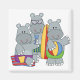 Hipopótamos en la playa bolsas de té, tarjetas, camisetas, trajes para el cuerpo, imanes, llaveros y otras prendas de vestir y regalos con hipopótamos que incluyen tres hipopótamos con una tabla de surf, una bola de playa y un balde y una pala. Puede personalizar estas camisetas y regalos de hipopótamo con un nombre u otro texto antes de hacer el pedido.