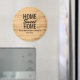 Un imán de refrigerador personalizado con fondo texturado de madera clara con la cita "Hogar dulce". Añada el apellido de su familia a este producto para darle un toque personal.