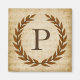 Una delicada corona de laurel está recubierta por un telón de fondo de chapa vintage de estilo romano clásico. Este diseño se personaliza con el monograma "P" en un rico tono de siena.