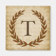 Una delicada corona de laurel está recubierta por un telón de fondo de chapa vintage de estilo romano clásico. Este diseño se personaliza con el monograma "T" en un rico tono de siena.