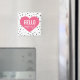 Imán divertido y caprichoso con patrones de puntos y corazón rosado.
