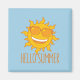 Personalizado vectorial personaje de sol usando gafas de sol con texto de Hello Summer. Genial en verano. Palabras clave: playa, llamas, personalizado, alegre, fuego, llama, amistoso, gafas, alegre, calor, calor, humor, ilustracion, temporada, sombra, sonrisa, estrella, verano, sol, gafas de sol, vacaciones, vector, clima, icono, verano