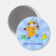 Holly Cow y sus amigos con un simple mensaje: Play In Puddle. ¿Qué más necesitas para hacer feliz tu vida? Magnate lindo y divertido para desbaratar tu frigorífico, adorable para colgar las atesoradas obras de arte de la escuela, o simplemente para alegrar las cosas. Y por todos los medios, solo tienes que salir y pisotear unos cuantos charcos de lluvia. Sabes que quieres ahora. Es bueno para el espíritu. ¡DISFRUTE!