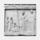 Hombre, mujer y niño ante un altar que ofrece una cerda como sacrificio a Demeter y Kore | por Praxiteles | Ubicación del arte: Louvre, París, Francia | Artista griego | Número de colección de imágenes: XIR185966