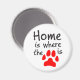 Un juego de palabras con la frase "El hogar es donde está el corazón", este imán redondo tiene las palabras "El hogar es donde está la [imagen impresa con una pata]", con la imagen impresa con una pata en rojo, que representa el "corazón". El regalo perfecto para los amantes de las mascotas.