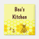 Imán de cocina de personalizable de Honey Bee Honeycomb con arte de abejas zumbando en un peine de miel de oro.