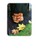 Una escena de otoño muy única con un grupo de hongos creciendo a la base de un árbol y coloridas hojas que los rodean en el suelo. Foto tomada en octubre de 2017, en mi barrio de Wilsonville, Oregón.