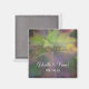 Personalizar de la hoja natural de roble Hydrangea Boda Square Magnet con los nombres personales de la novia y el novio y su fecha de ceremonia matrimonial de setiembre, octubre o noviembre otoño para crear una temporada salvo el anuncio de fecha, mantener el regalo o el favor del partido. Este elegante imán personalizado boda otoñal presenta una suave fotografía de exposición múltiple de hojas de roble Hydrangea en colores otoñales de verde, amarillo y morado.
