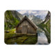 Imán fotográfico rectangular con una cabaña de madera en el interior del lago Obersee rodeada de hermosas montañas de los Alpes en un paisaje bávaro en el extremo sureste de Alemania, cerca de la frontera con Austria.