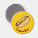 ilustracion personalizado de hotdog. Iconos de contorno de comida basura fondo de patrón amarillo. Texto personalizado.