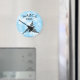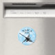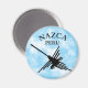 Famoso dibujo de las Líneas de Nazca basado en el geoglífico del colibrí del desierto con texto curvo. Versión de diseño negro en cielo azul. imanes personalizados.