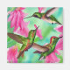 Aquí hay una hermosa escena de acuarela de colibríes recolectando néctar en la naturaleza. Usando verde, rosa y un toque de rojo.