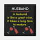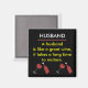 Botella de vino y vidrio con palabras que dicen que HUSBAND hace un divertido imán de vino gracioso